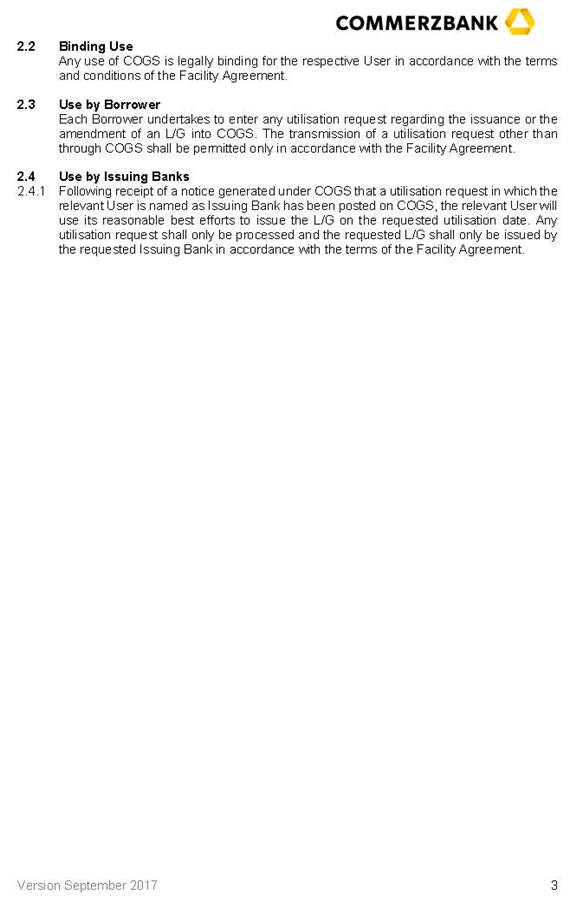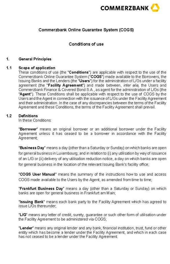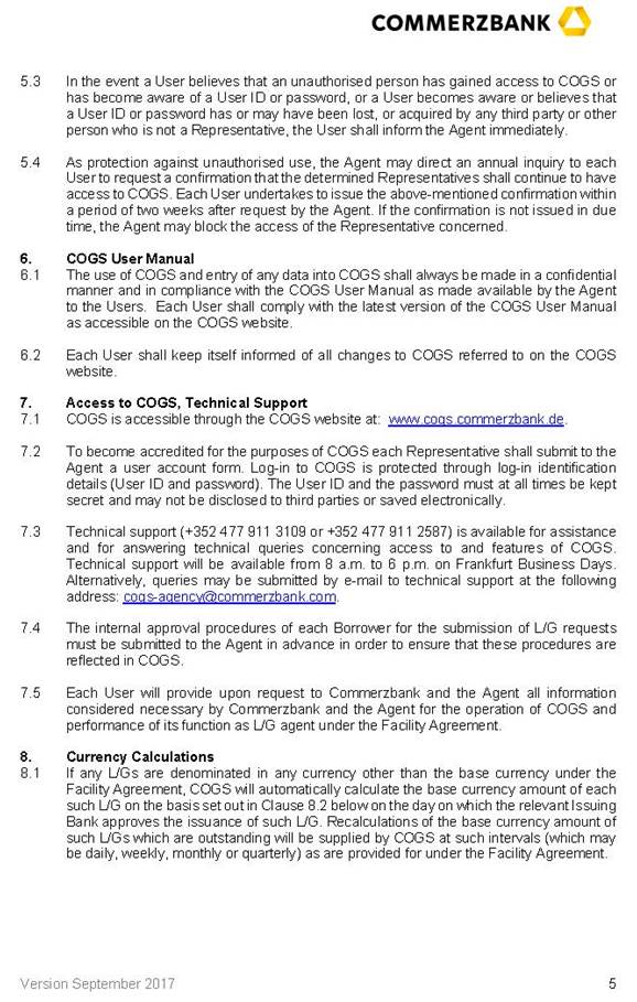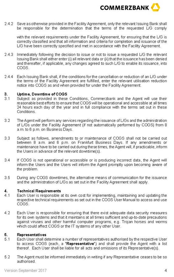 | (4) | COMMERZBANK AKTIENGESELLSCHAFT as coordinator, mandated lead arranger and bookrunner (the "Arranger"); |