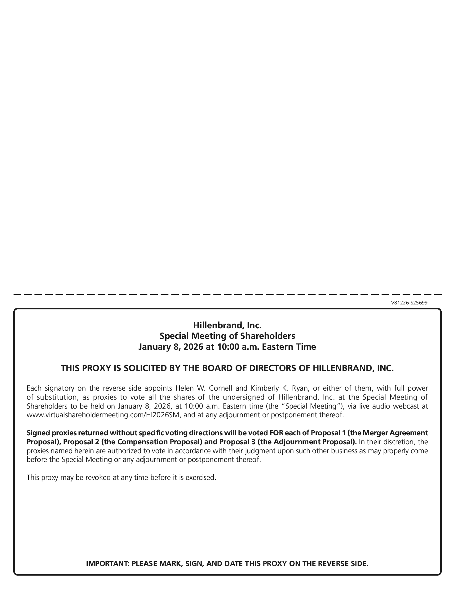 The Merger. Upon the terms and subject to the conditions of this Agreement, and in accordance with the applicable provisions of the IBCL, (a) at the Effective Time, Merger Sub shall be merged with and into the Company, whereupon the separate corporate existence of Merger Sub shall cease, (b) the Company shall continue its corporate existence under the name “Hillenbrand, Inc.” as the surviving corporation in the Merger (the “